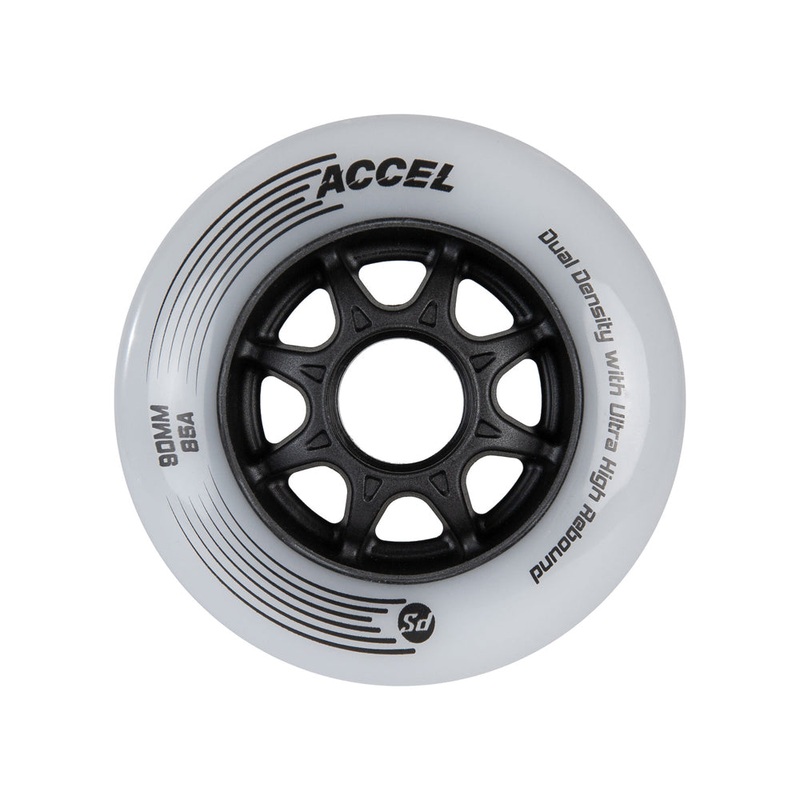 ACCEL wheels are the new dual density wheels for racing. Using the Ultra High Rebound (UHR) in 85A those wheels will give you a nice grip and a great flex to train at high speed.